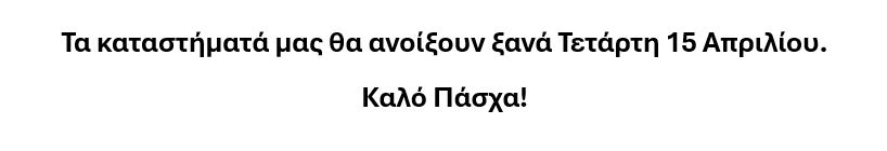 - Τα προϊόντα που παραθέτουμε ειναι ενδεικτικά,στο κατάστημα μας θα βρείτε ακόμη μεγαλύτερη ποικιλία σε όλα μας τα είδη .